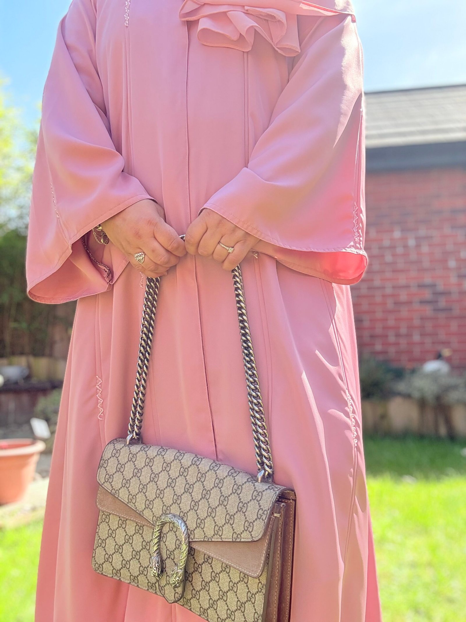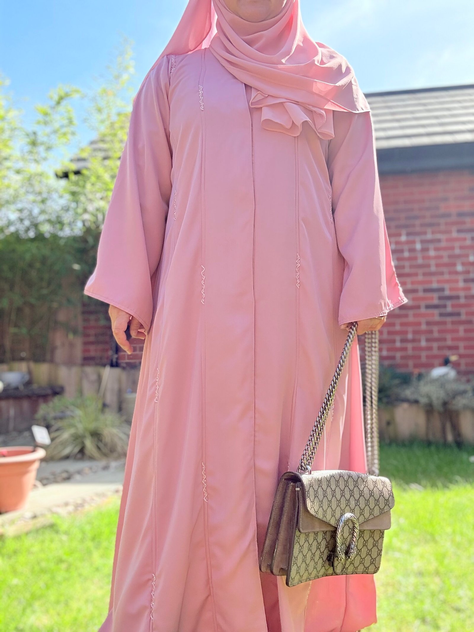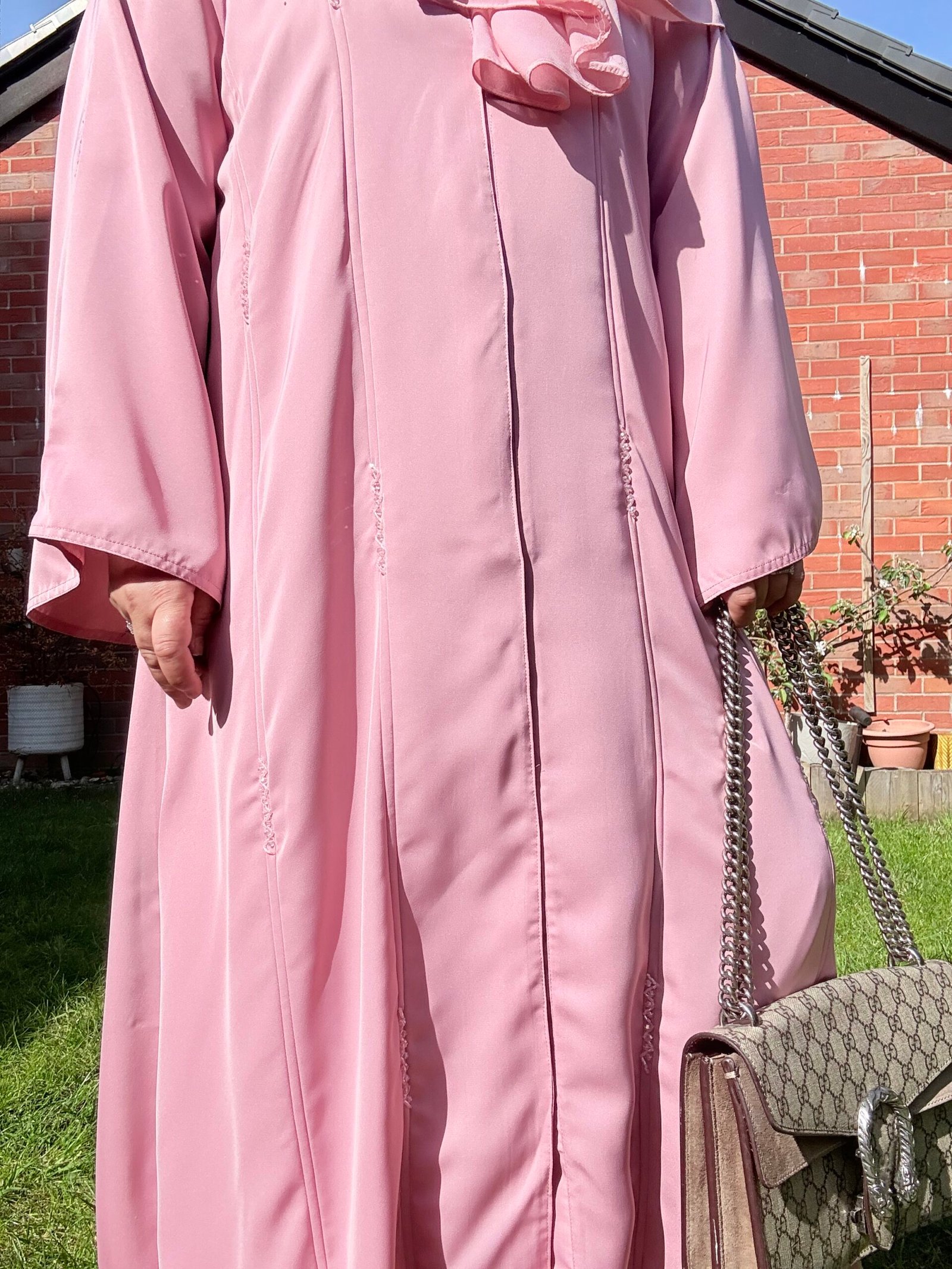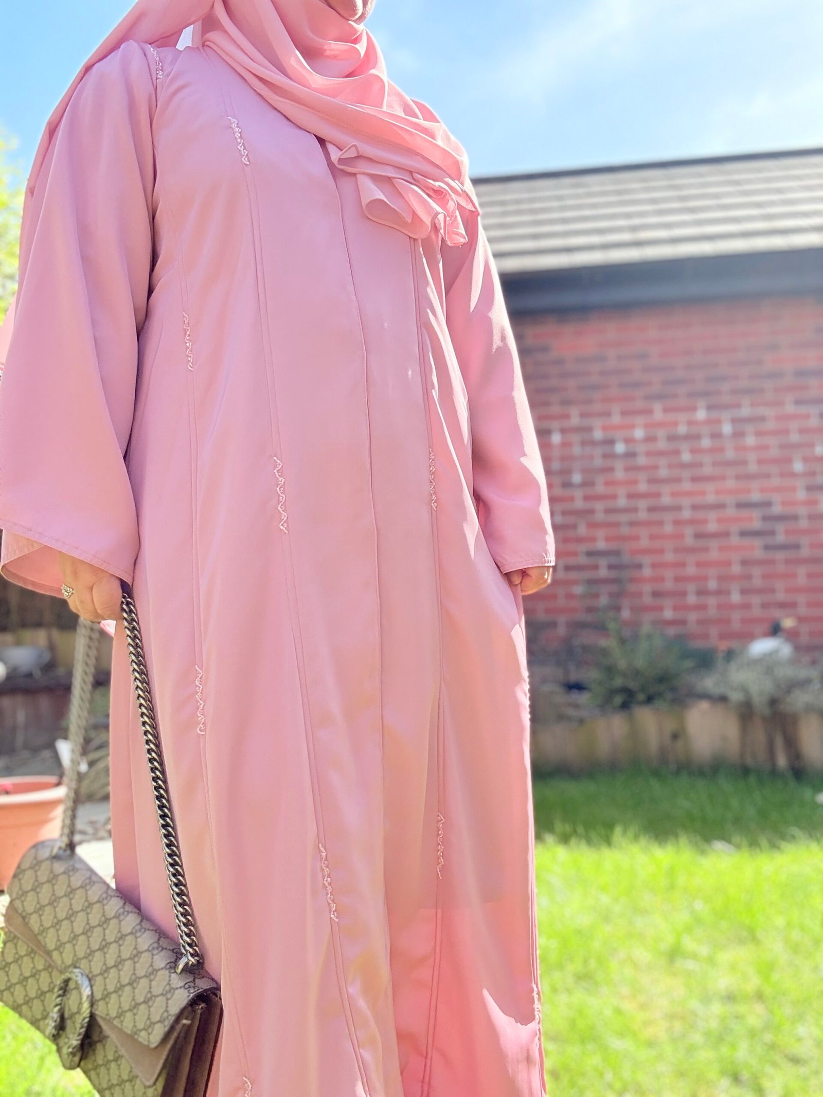 Soft as a dawn breeze, Sahar is a blush-toned abaya that pairs classic simplicity with a delicate touch. Featuring a graceful front pleat and a fabric rosette at the neckline, this piece offers a subtle statement for those who love understated femininity. Whether worn to brunch or for a serene evening walk, Sahar is where modest charm meets timeless design.