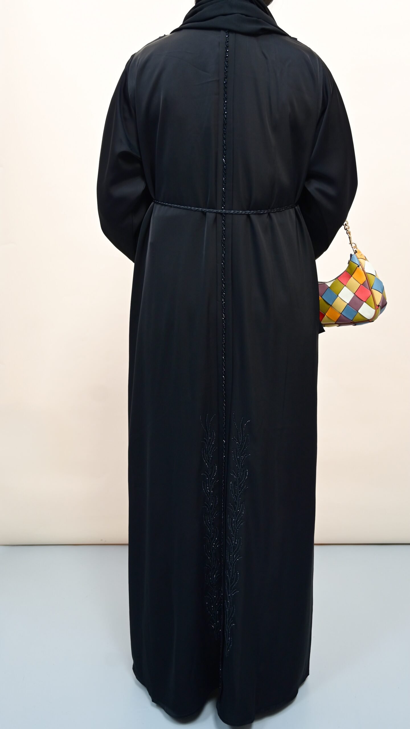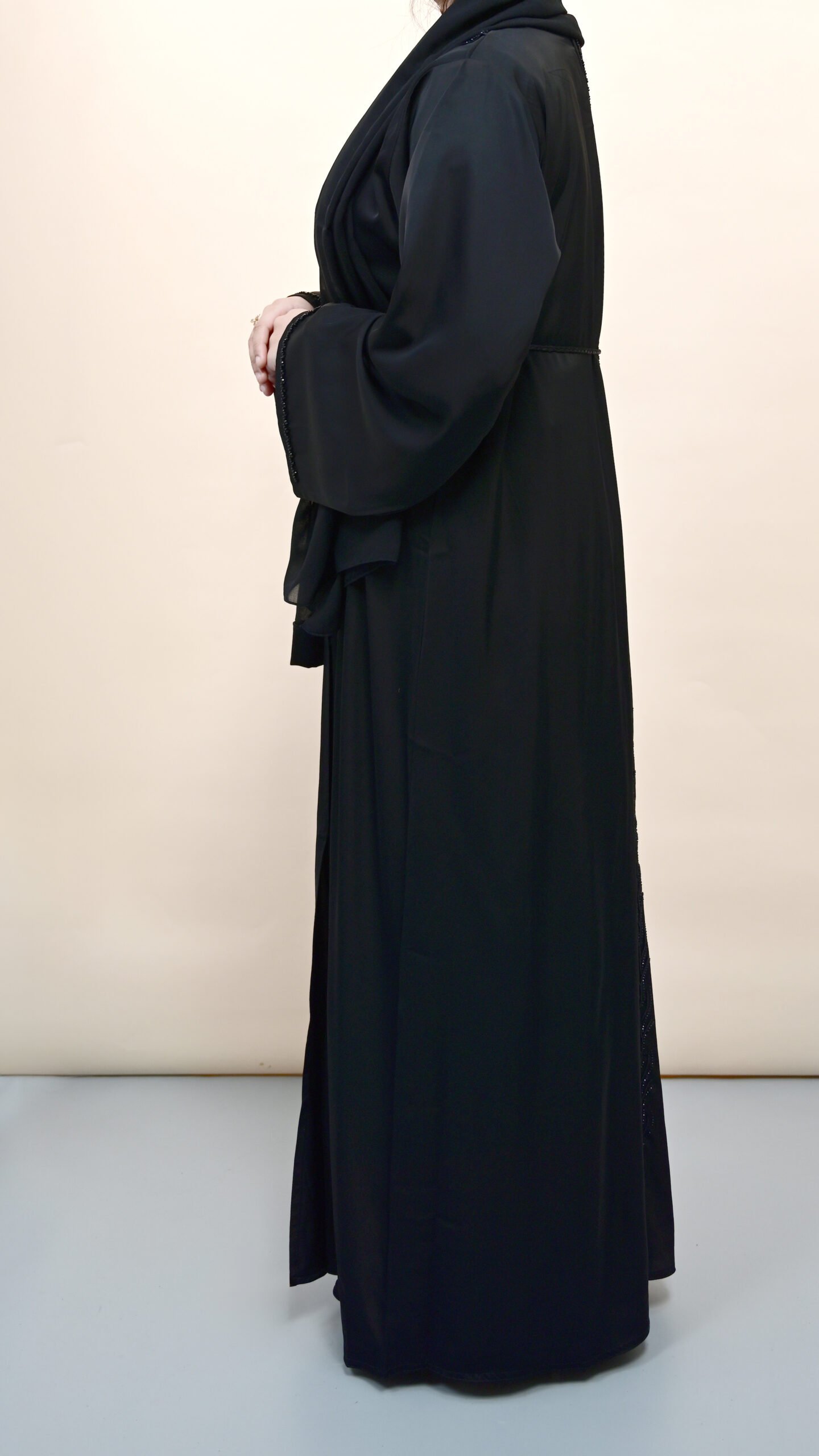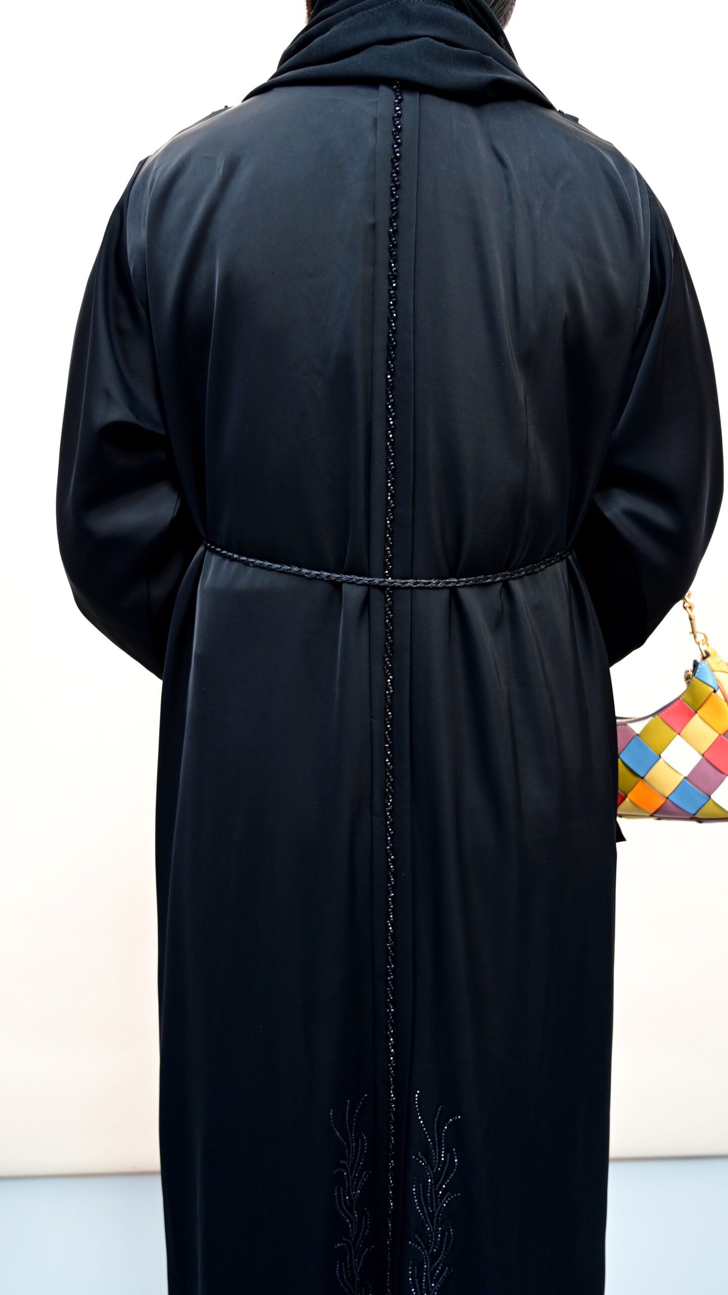 Elegant in its simplicity, Salwa is the epitome of everyday sophistication. This classic black abaya features a clean silhouette, subtle stitched detailing at the cuffs and waist, and a gentle flare that adds graceful movement. Perfect for both casual wear and refined occasions, Salwa is a timeless staple for every modest wardrobe.